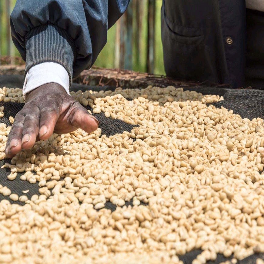 The area around Kamoko has an annual rainfall of 990-1100mm and volcanic soils, which are most suitable for coffee cultivation. At the Kamoko factory, the coffee is processed by washing. First, the freshly harvested cherries are passed through a pulping machine to separate the skin and pulp. Next, the beans are separated by weight as they pass through a channel. They then pass through a rotating drum to separate by size. They are then taken straight to a large fermentation tank filled with water, where they remain for 12-48 hours to remove the mucilage layer on the parchment. While resting in the tank, naturally occurring enzymes dissolve this layer. From there, it is further rinsed through a channel and transported to elevated beds for drying. The product is dried until the optimum moisture content is reached and then shipped.