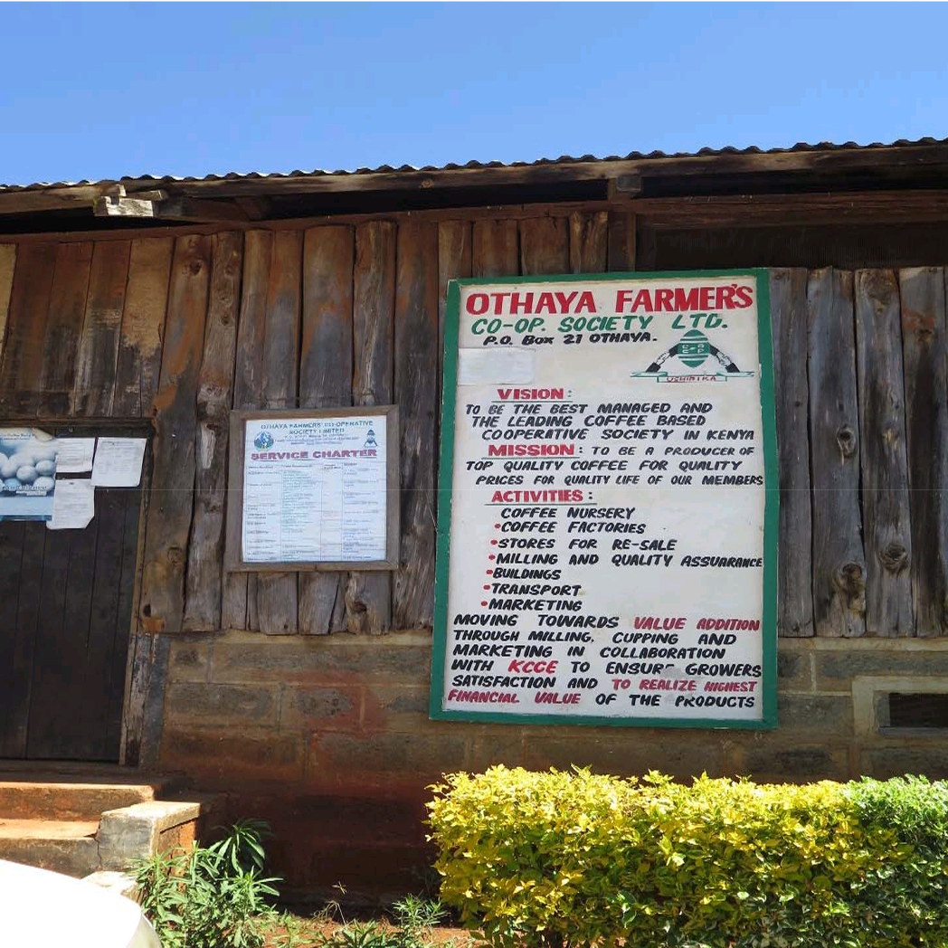 オサヤ農家協同組合は、Nyeri郡のOthayaとその周辺にある19の小さなウェットミルからなる組織です。1956年に250人の農家で登録され、その後15,000人以上の会員を抱えるまでに成長しました。 Kamoko工場はこの組合が所有し管理するウォッシングステーションです。組合員は標高1173mから2300mの間にある近隣の農場でコーヒーを栽培しているメンバーで構成され、その数は1500人程となっています。組合には苗床と農産物直売所があり、会員に投入資材や設備、苗を供給しています。