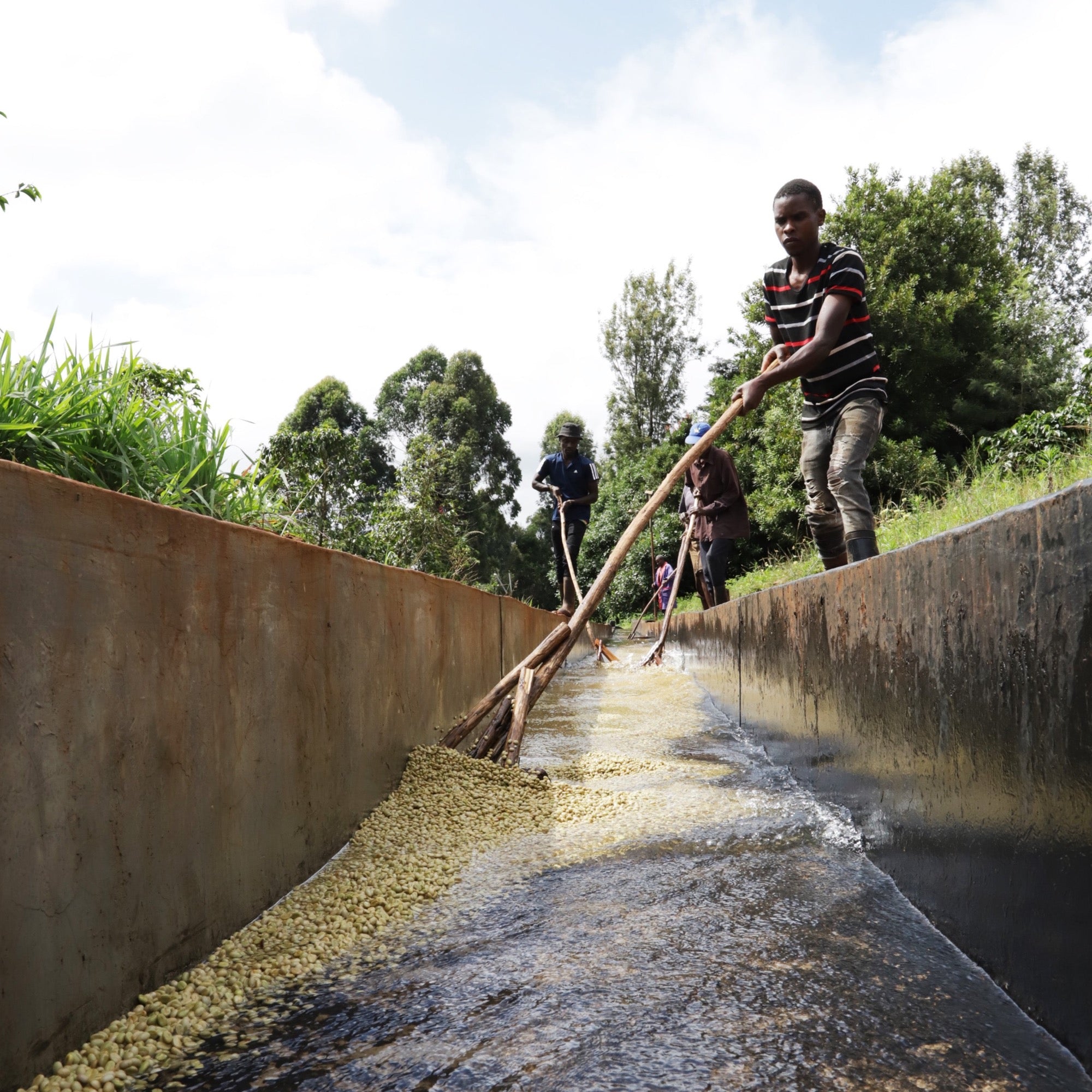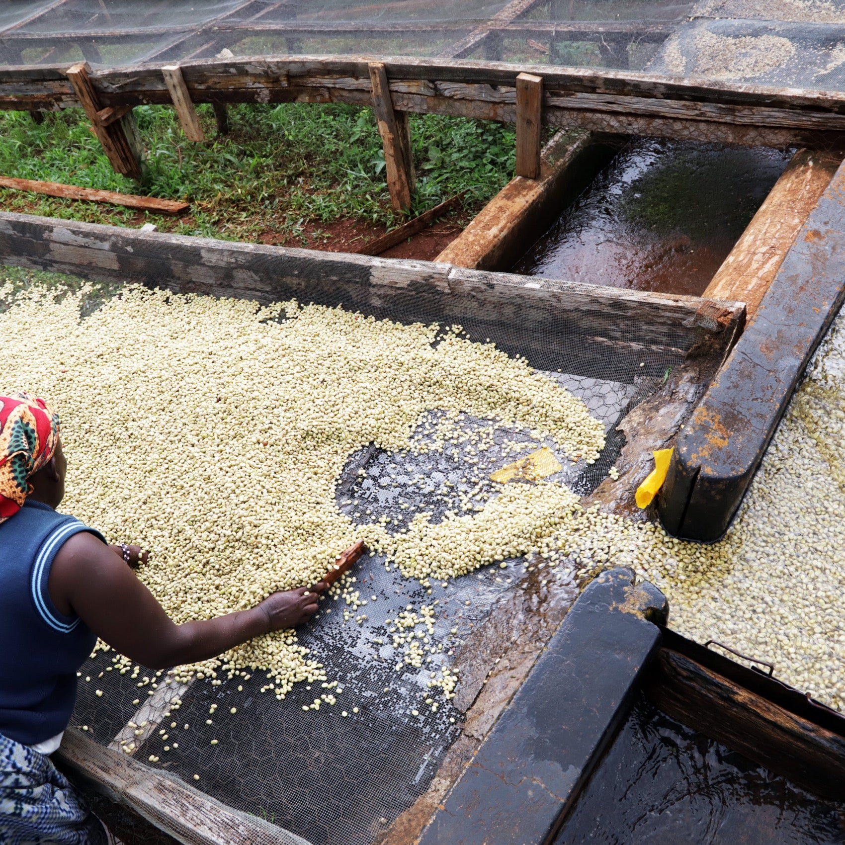 熟したコーヒーチェリーが収穫・水洗され、工場に運ばれた後、果肉除去され、24時間乾燥発酵されます。その後、ラガティ川のきれいな水で水洗され、高床式乾燥機で乾燥されます。